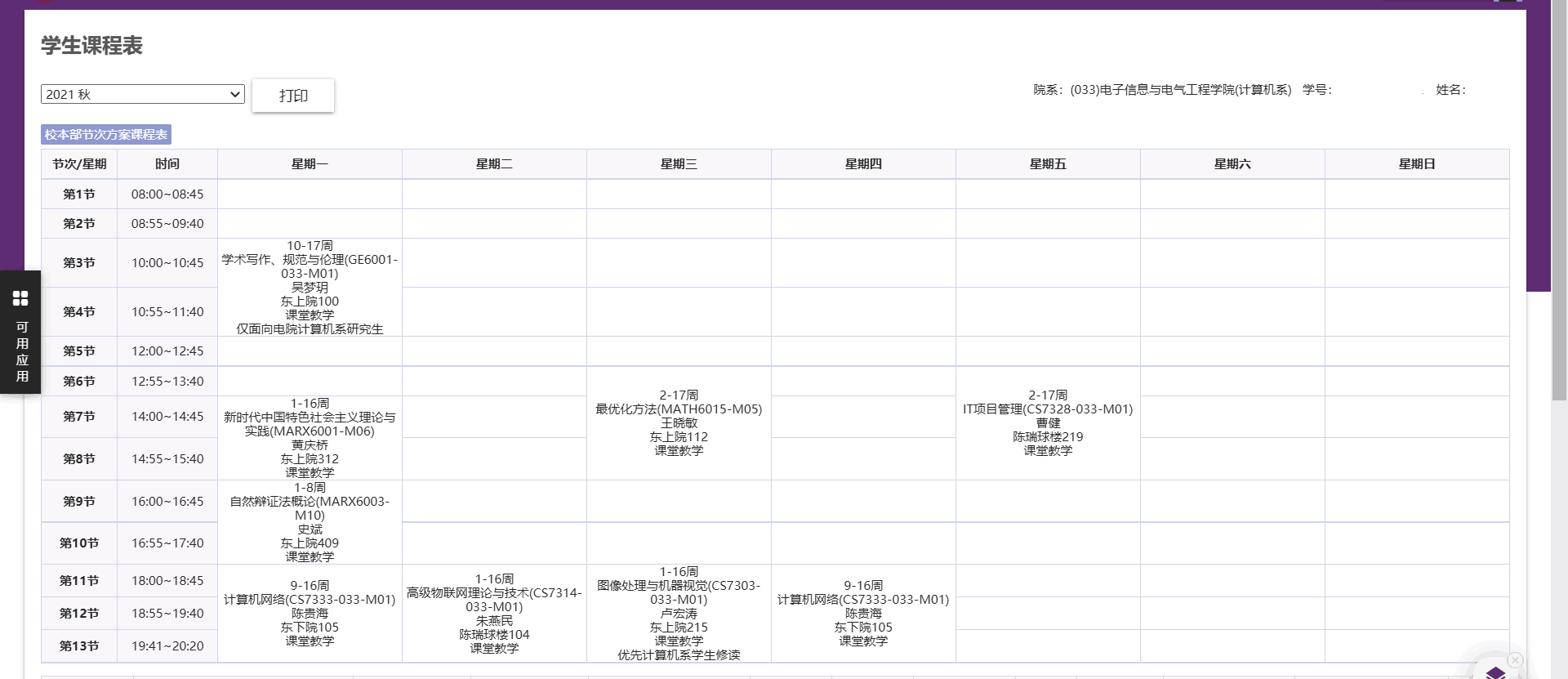 给大家看看我这学期的课表吧